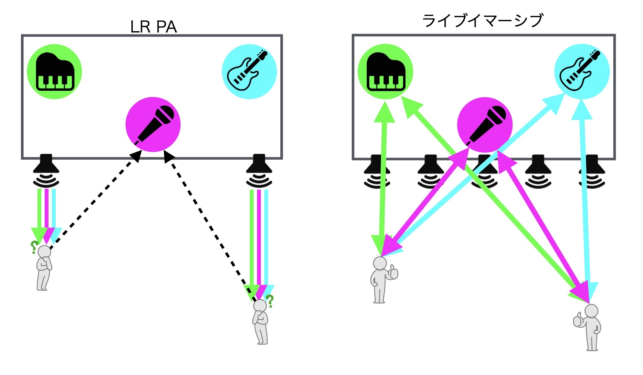 これらが統合的に達成される事により、従来のLR PAでは実現不可能な「高い没入感」をリスナー側、演者側、両者に提供することが可能です。